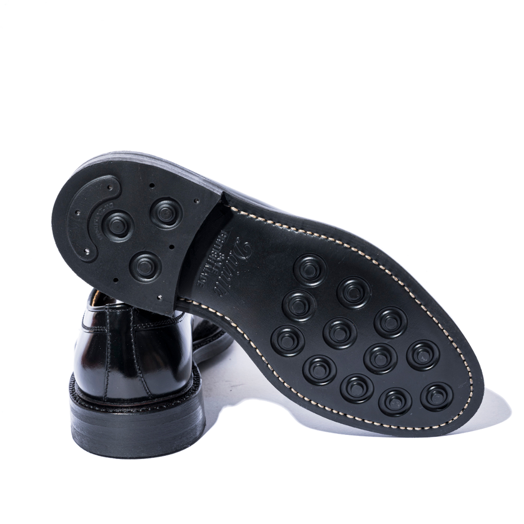 *Il procedimento Goodyear fu brevettato da Charles Goodyear nel 1839: il guardolo, un perimetro di morbida pelle montato lungo la scarpa, viene cucito al sottopiede, anch'esso in pelle, fissando insieme anche tomaia e fodera. Successivamente viene cucita la suola in cuoio