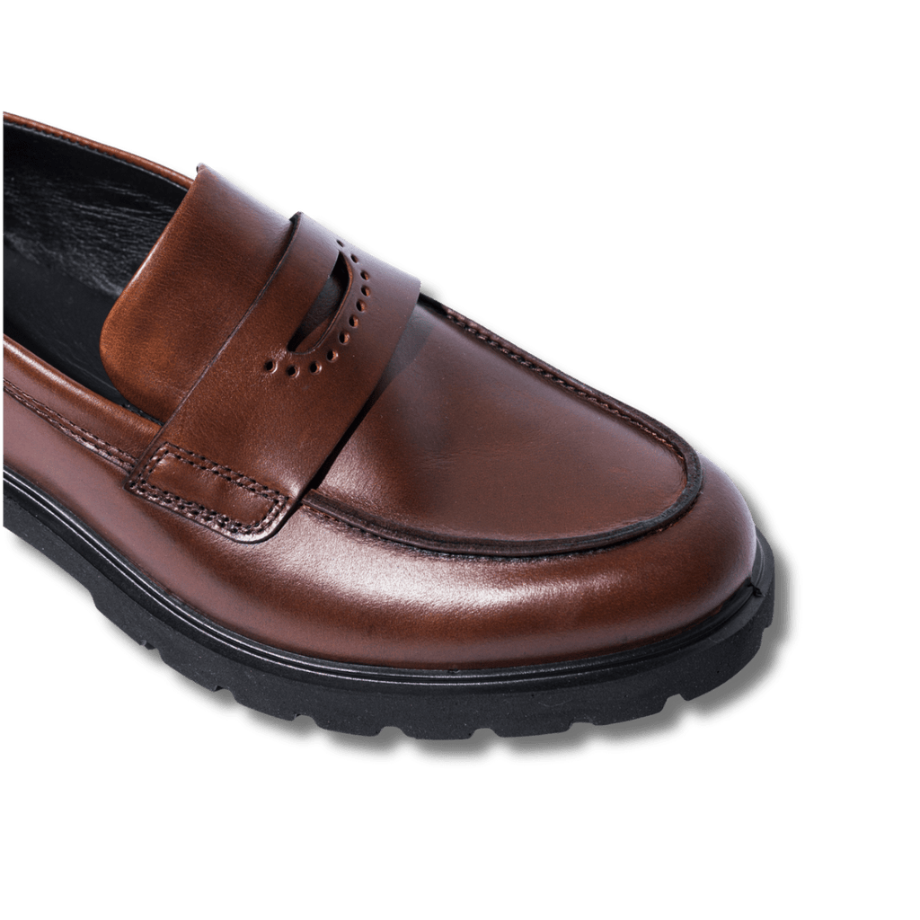 Mocassini, dalla linea semplice, con tomaia in pelle morbida color cuoio, e fodera in pelle e tessuto. Doppia soletta, entrambe estraibili, per una doppia vestibilità: Dual Fit. La suola, in gomma "carro armato", è leggera e ultra flessibile, realizzata con la tecnologia Ecco Fluidform, che offre comfort e stabilità alla camminata