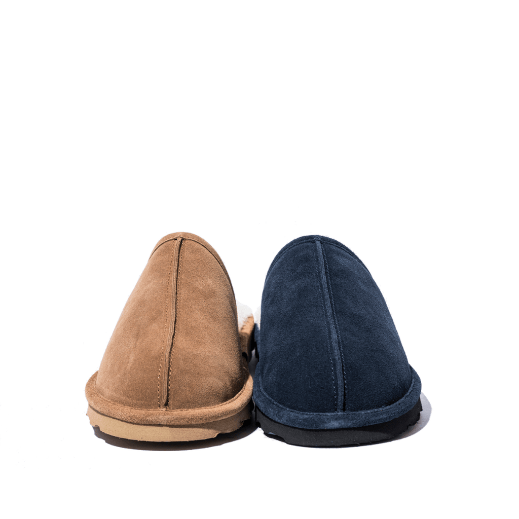 Pantofole imbottite, con tomaia in pelle scamosciata, beige. Suola in gomma leggera e flessibile. Sottopiede con leggera imbottitura memory foam, per una comoda ammortizzazione.
