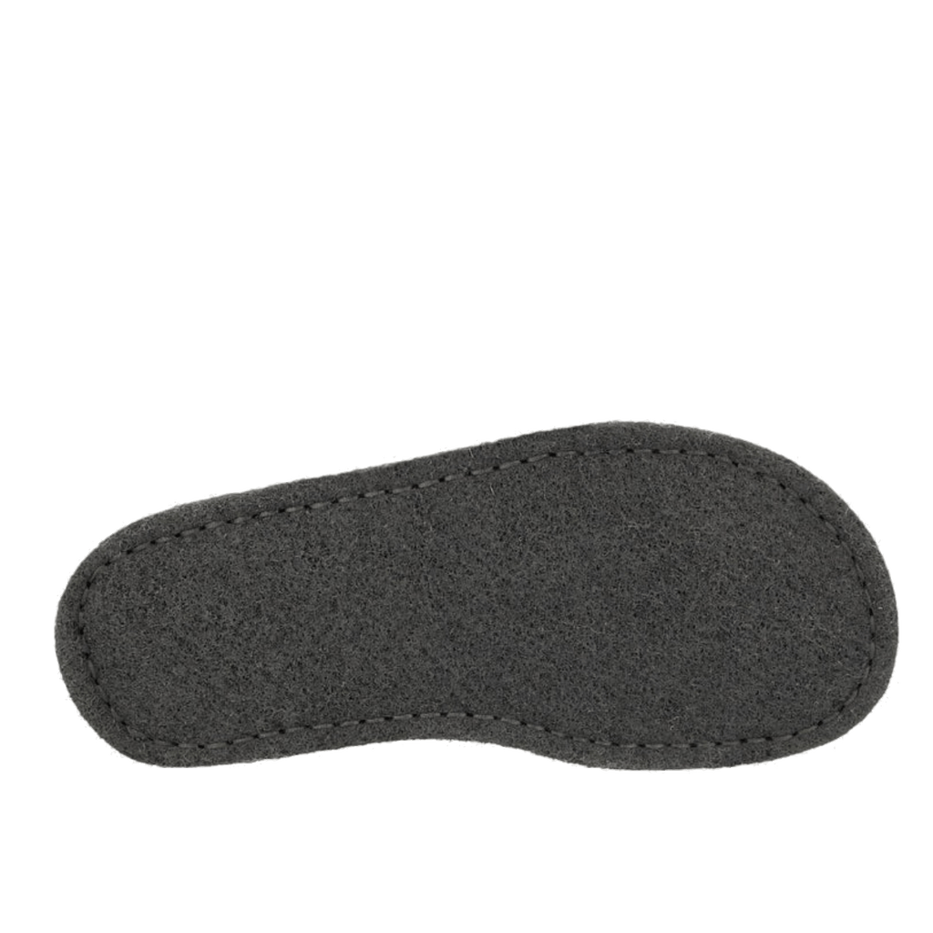 Pantofole realizzate in Germania, in 100% feltro di lana, con suola 10 mm di feltro, rivestita in lattice antiscivolo. Soletta interna in 100% pura lana vergine, plantare in schiuma di lattice ammortizzante e tallone avvolgente