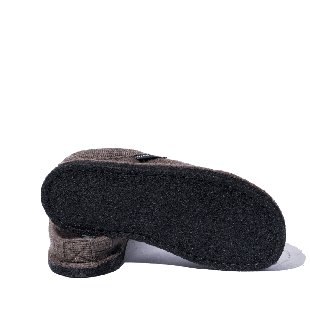Pantofole realizzate in Germania, in 100% feltro di lana, con suola 10 mm di feltro, rivestita in lattice antiscivolo. Soletta interna in 100% pura lana vergine, plantare in schiuma di lattice ammortizzante e tallone avvolgente
