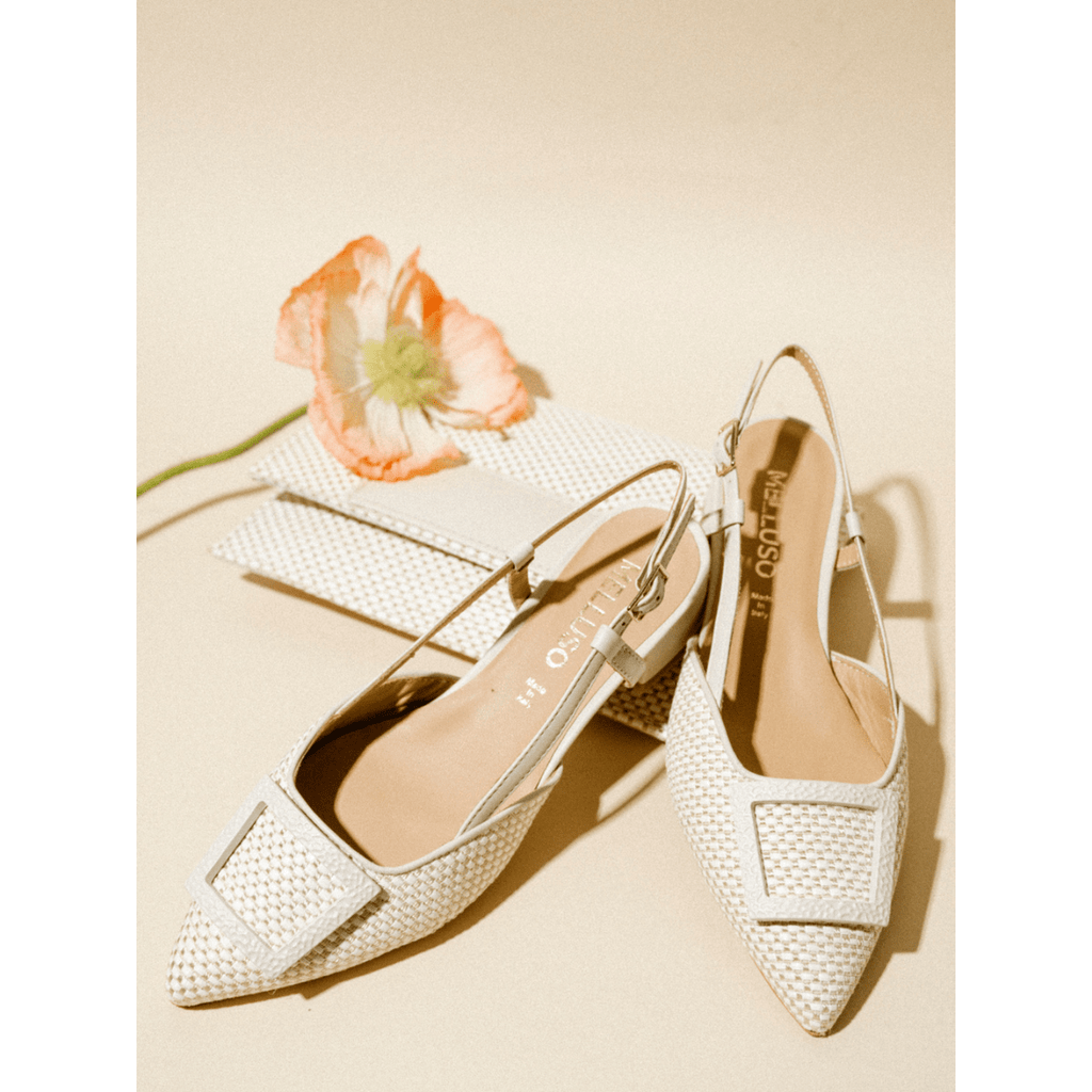 Borsa piccola, in rafia dai toni del bianco e del beige, con tracolla dorata e inserto in pelle, tono su tono. Fodera in tessuto; chiusura con bottone magnetico