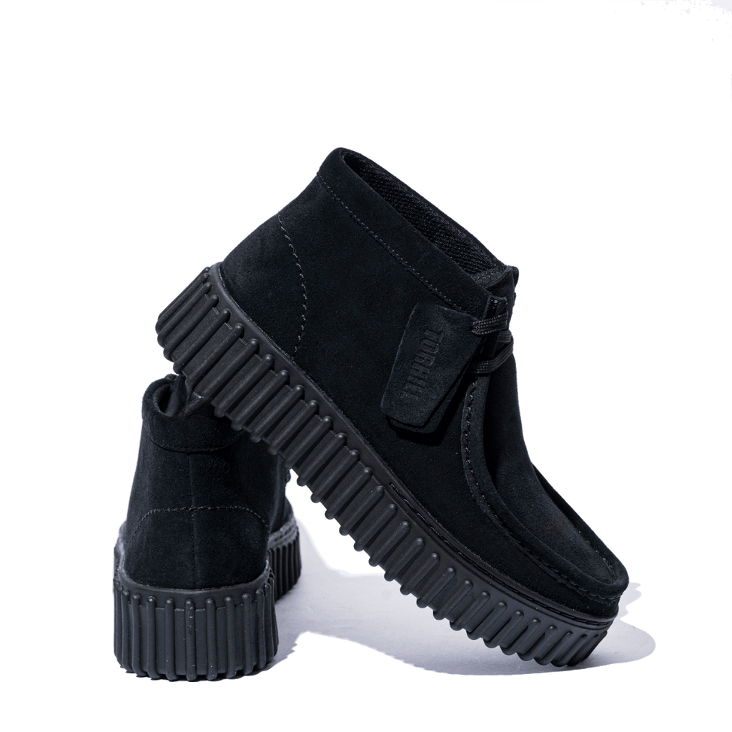 Polacchini con allacciatura due fori, comodi, in pelle scamosciata nera, con suola in gomma spessa, scanalata, flessibile. Interno foderato in caldo tessuto traspirante. Adatti in montagna, ma anche in città per un look invernale, casual e raffinato. Plantare in pelle, ammortizzato, estraibile, con altezza del tacco di 4 cm