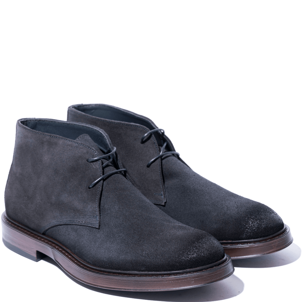 Polacchini provenienti dal territorio campano, realizzati artigianalmente con materiali di prima qualità esclusivamente di origine italiana. Tomaia in pelle scamosciata blu, leggermente ingrassata, per un aspetto vissuto della calzatura ed un utilizzo più casual. Fodera pelle; fondo in gomma
