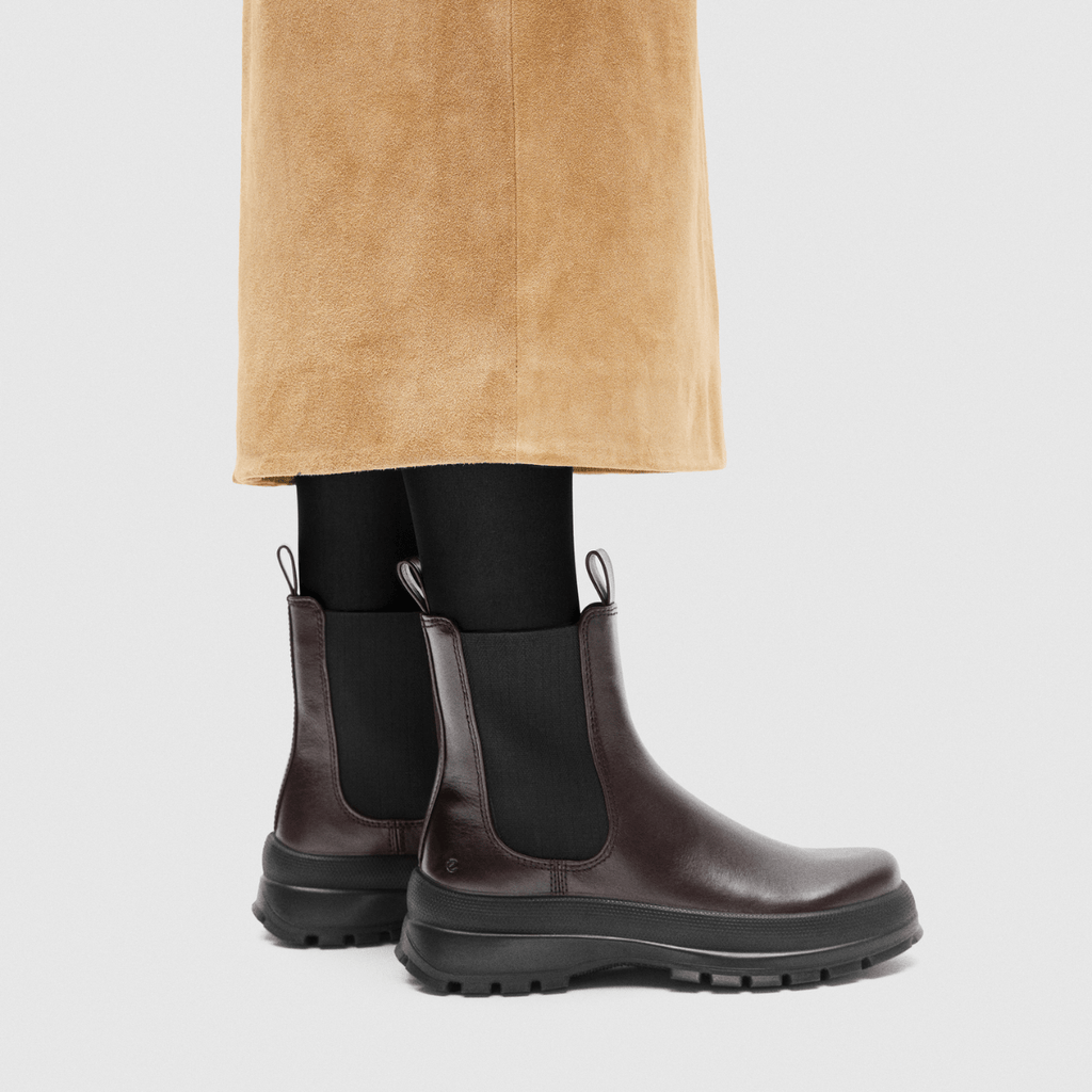 Stivaletti beatles, con tomaia in pelle robusta, bordeaux, ed interno in tessuto traspirante. Chiusura con i due elastici laterali e asole che facilitano l'ingresso del piede. Tecnologia Ecco Fluidform, flessibile e anatomica: la scarpa si adatta perfettamente alla forma del piede. Suola in gomma "carro armato", con bordatura protettiva gommata sulla tomaia. Plantare in pelle, estraibile. Ideali per camminare a lungo, mantenendo raffinatezza in un look casual