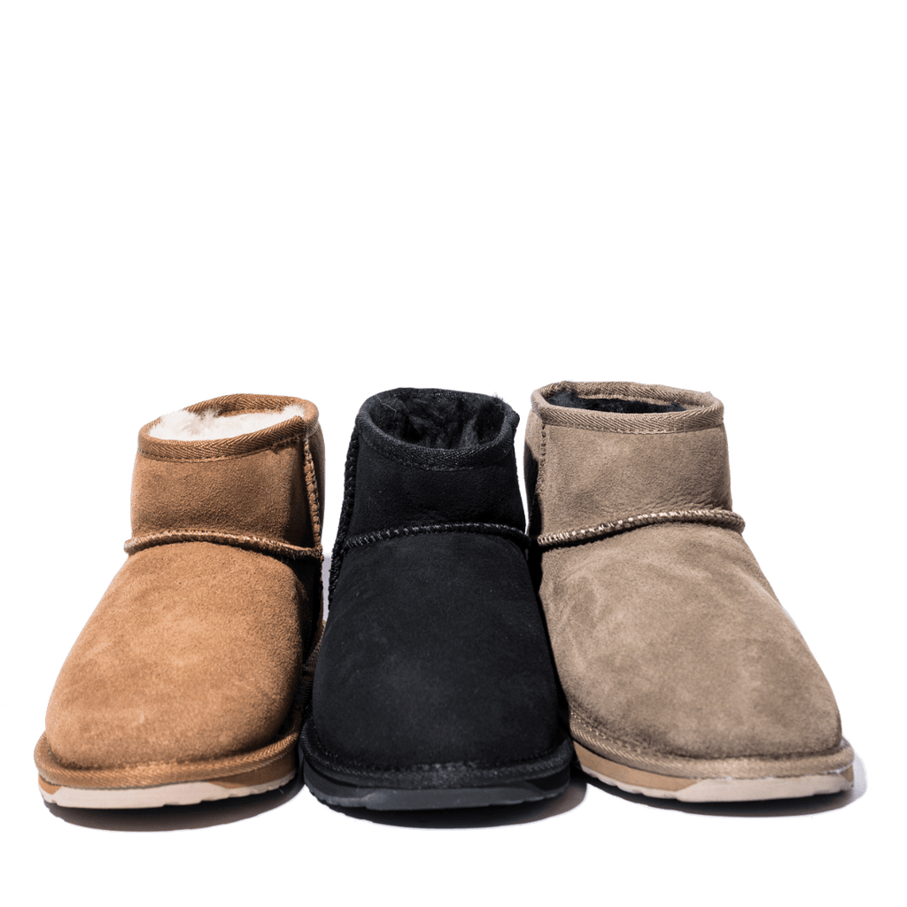 Stivaletti slip-on  alla caviglia del marchio australiano noto per i suoi prodotti comodi, realizzati con materiali naturali che garantiscono comfort e durata. Tomaia in montone australiano, resistente all'acqua, imbottito, e suola in gomma robusta. Sottopiede con leggera imbottitura memory foam, per una comoda ammortizzazione. Il montone traspira e naturalmente allontana l'umidità, lasciando le calzature senza odore e i piedi con la perfetta temperatura