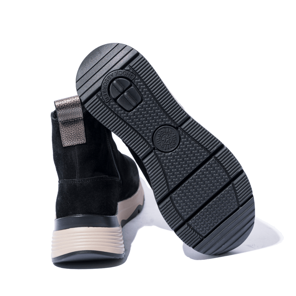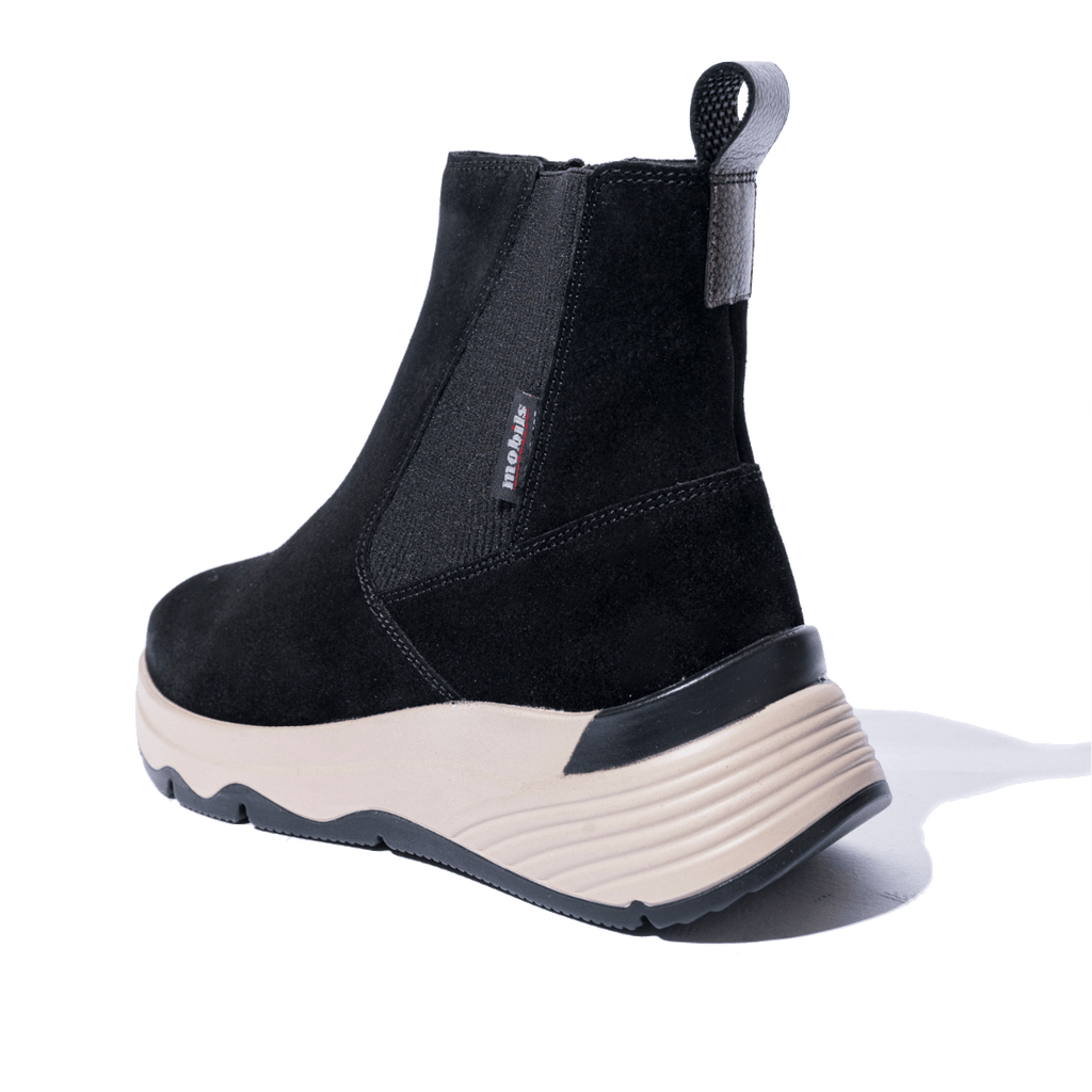 Stivaletti del marchio Mephisto, noto per il comfort unico delle sue calzature, i materiali di alta qualità, e la garanzia di camminate defaticanti. Tomaia in pelle scamosciata nera, fodera interna in pelle. Banda elasticizzata esterna e cerniera sul lato interno che facilita l'ingresso del piede. Il plantare, estraibile, con tecnologia Soft-Air, soffice e flessibile, ammortizza gli urti, per una sensazione di comfort durante la camminata. Fondo in gomma leggera e flessibile, con zeppa di altezza 4.5 cm