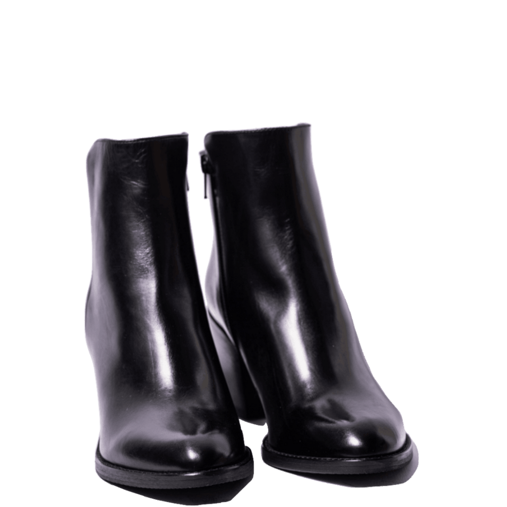 Tronchetti Luca Grossi, calzaturificio italiano che opera con i materiali più pregiati, provenienti dal distretto conciario della Toscana, che seguono la linea del camperos, mantenendo semplicità ed eleganza. Tomaia in pelle morbida nera. Foderati internamente in pelle. Cerniera sul lato interno della caviglia. Fondo in cuoio, con mezza gomma sottile.